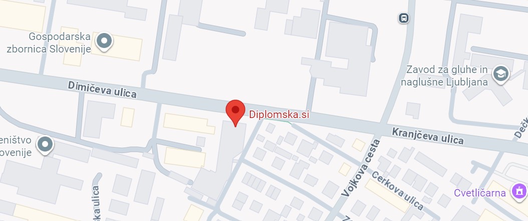 Če pridete iz smeri Vojkove, zavijte na Dimičevo. Nahajamo se na levi strani, vhod za Geostroj. Poiščite oznako Diplomska.si.